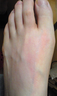 ↑足に2箇所ダニに噛まれて、掻きますと
