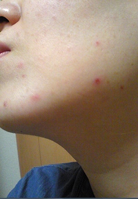↑顔にダニに刺された?