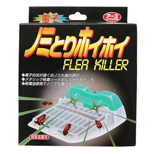 光でノミを引き寄せるという発想で開発された商品!光で引き寄せたノミは、強力粘着テープに付いた本体に飛んてくると、身動きが取れなくなる仕組みです。