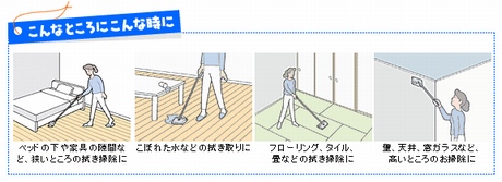 ●水拭き、から拭きも腰をかがめずに楽な姿勢で床掃除ができる
